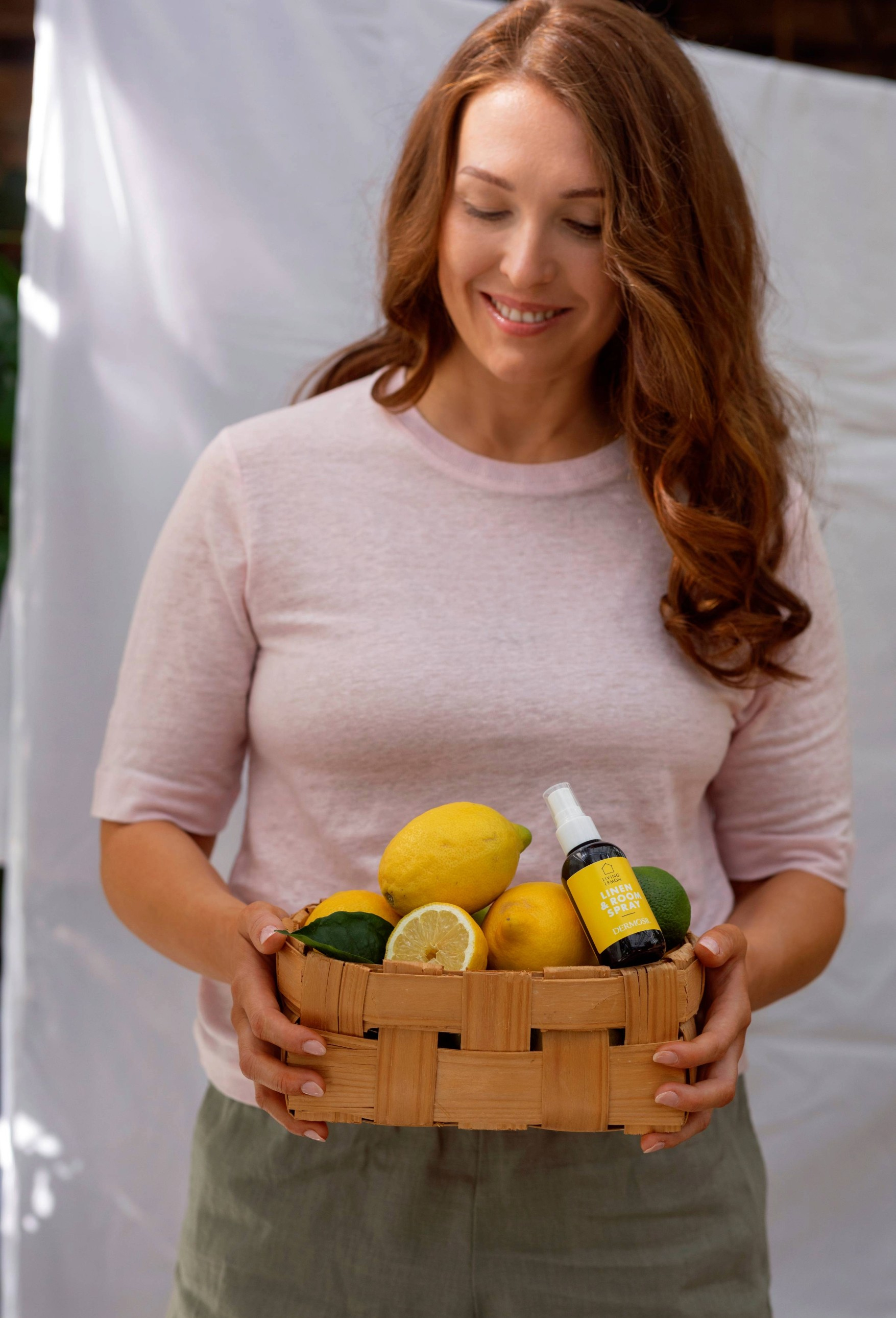 Fräscha upp ditt hem och hemmets textilier enkelt och snabbt! Linne- & rumsspray Lemon är en vattenbaserad spray med en fräsch, söt doft av citron med inslag av citrongräs och persika.