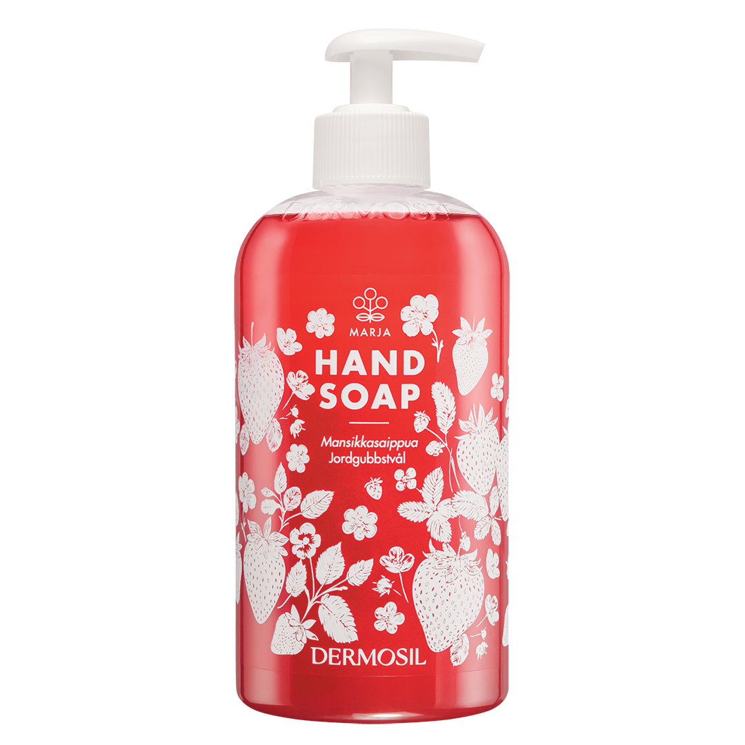 Med den jordgubbsdoftande handtvålen rengör du händerna utan att torka ut huden. Tvålen innehåller vårdande jordgubbsextrakt samt betain och glycerin som återfuktar huden. Jordgubbstvålen kommer i en vackert illustrerad, dryg pumpflaska på 500 ml.