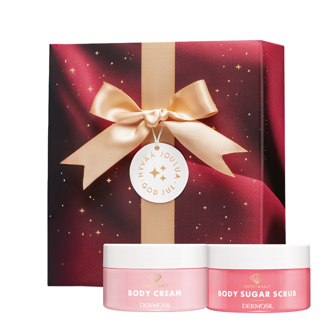 Julgåva Sweet & Salt Hudvårdsduo innehåller två fantastiska produkter som gör huden underbart mjuk och silkeslen. Kombinationen av söta och salta ingredienser i Sweet & Salt Kroppspeeling och Sweet & Salt Kroppskräm skämmer bort huden på bästa sätt.