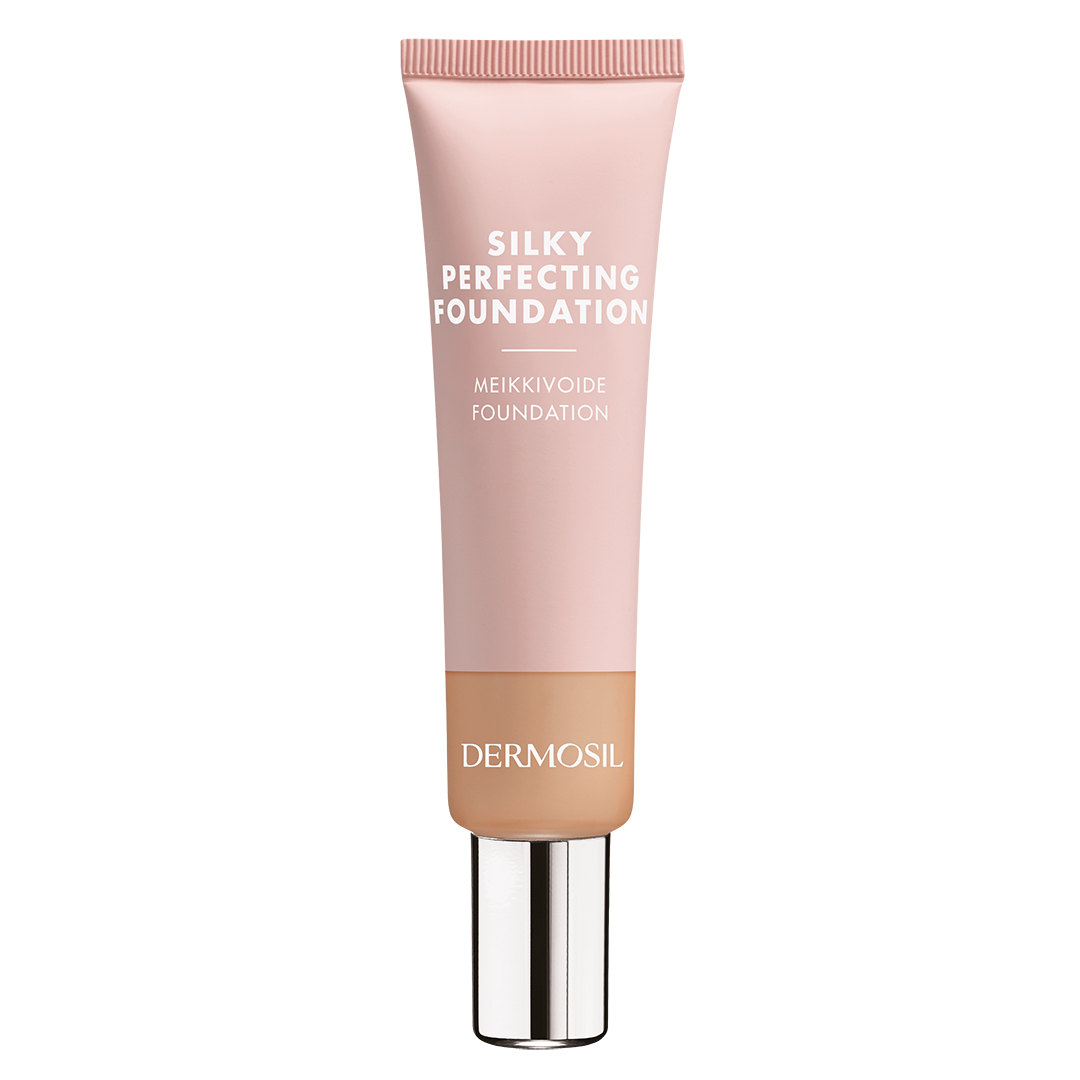 Silky Perfecting foundation har en fjäderlätt sammansättning som smälter perfekt samman med hyn och ger ansiktet vacker och naturlig lyster. Krämen täcker effektivt hudens små skavanker och ojämnheter, vilket gör hyn felfri och sammetsmjuk.