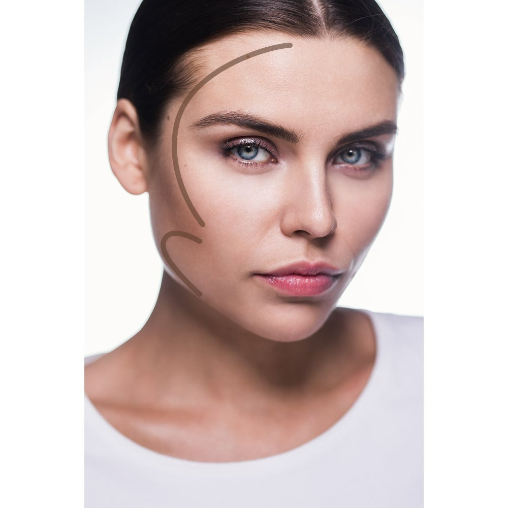 Med solpuder framhäver du snyggt de delar av ansiktet där solen träffar naturligt. Det kan även appliceras på axlar och i dekolletaget. Kom ihåg att sudda ut eventuella gränser med en borste för ett naturligt resultat.