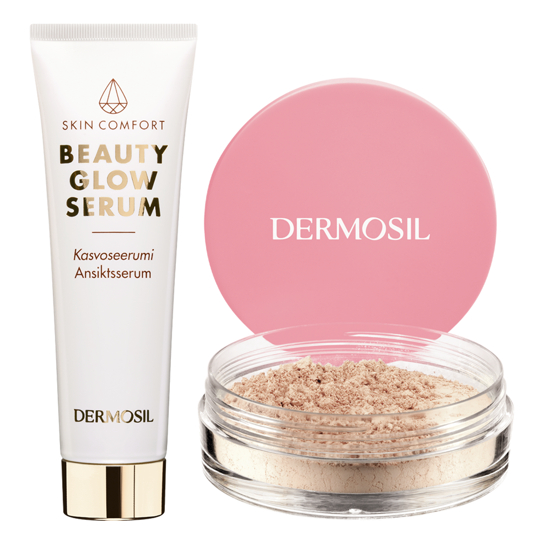 En vacker, klar hud ger ansiktet nytt liv! Glow kit fair kombinerar hudvård och makeup till en harmonisk och naturlig helhet. Setet innehåller lystergivande Beauty Glow Ansiktsserum samt Mineralpuder i nyansen fair. Med produkterna skapar du ett fräscht och vackert strålande resultat där hudens naturliga skönhet får ta plats.